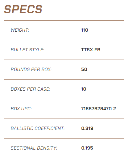 The Barnes Tipped TSX features a 100-percent copper body with rings cut into the shank. A polymer tip boosts the ballistic coefficient, improves long-range ballistics and provides fast expansion. The four razor sharp cutting petals double the bullet diameter making delivering "dead right there" performance.