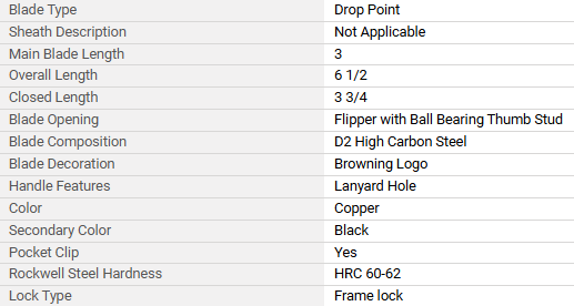 Durable and stylish, the Jericho folding knife is made for everyday cutting tasks. Its rugged D2 steel drop-point blade offers excellent edge retention. Electroplated copper wash with a black oxide stonewash finish adds protection against corrosion and gives the blade and handle a modern, rustic look. This folding knife's ball-bearing flipper deployment enables a quick deployment. A reversible pocket clip provides convenience and functionality, allowing for an easy and secure carry.