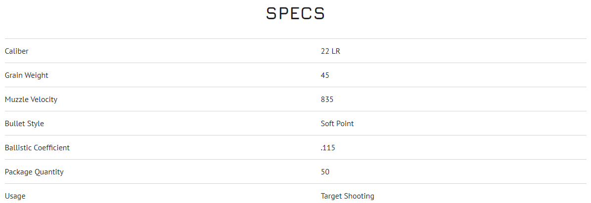- Low velocity 835 fps