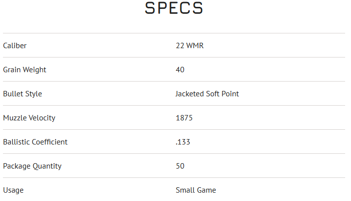 CCI Gamepoint, 22 WMR, 40gr, Jacketed Soft Point, 1875 fps