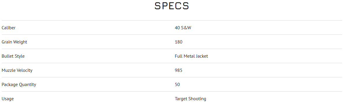 CCI Blazer Brass, 40 S&W, 180gr, Full Metal Jacket, 985 fps