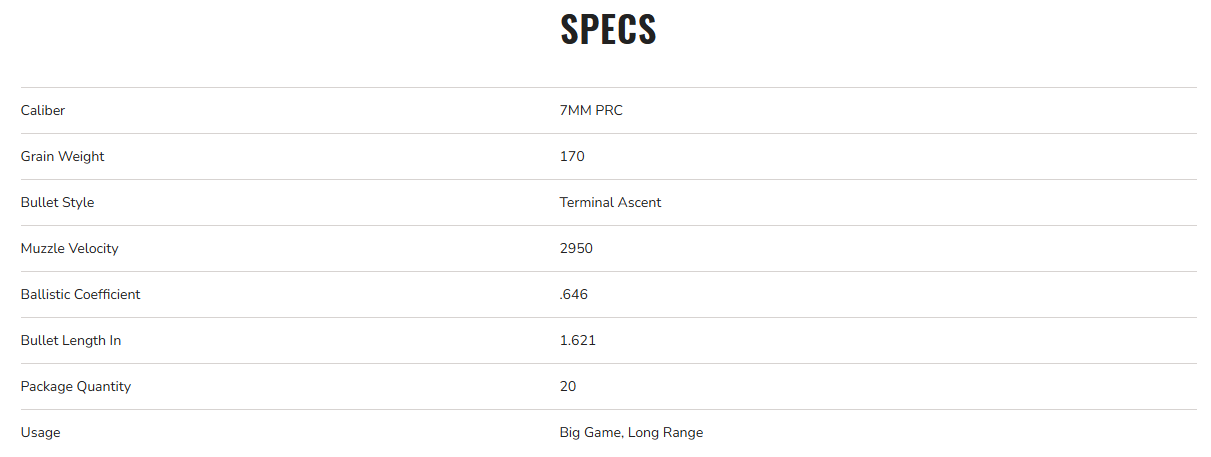 Federal Premium 7MM PRC, 170gr, Terminal Ascent, 2950 fps