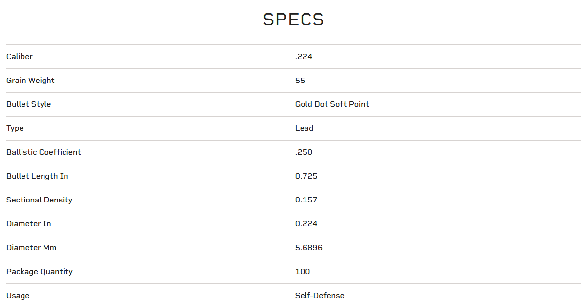 Law enforcement professionals trust the Gold Dot® bullet design with their lives every day. Now Speer® offers consumers the same performance in a line of personal protection rifle bullets. Their exclusive manufacturing process bonds the uniform jacket to the core one atom at a time, ensuring proper expansion and nearly 100 percent weight retention. The result is superb accuracy and immediate, threat-stopping performance.