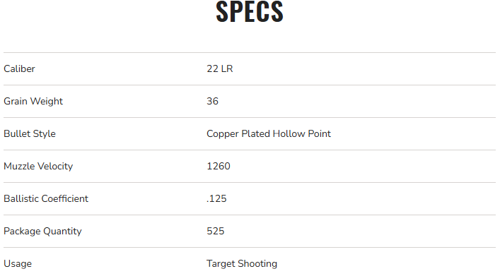 Federal Champion Training 22LR 36gr, Copper Plated Hollow Point, 1260 fps, 525ct