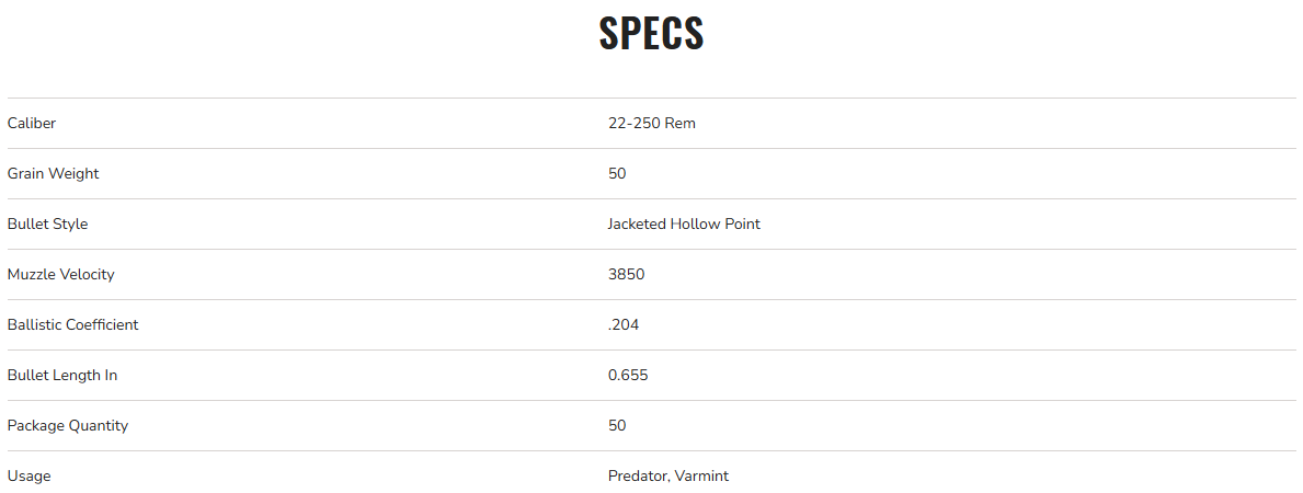Federal Varmint & Predator, 22-250 Rem, 50gr, Jacketed Hollow Point, 3850 fps