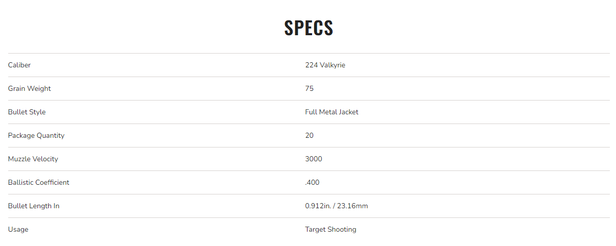 American Eagle 224 Valkyrie 75gr Full Metal Jacket**