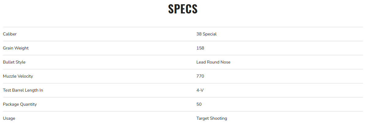 | Caliber | 38 Special |
