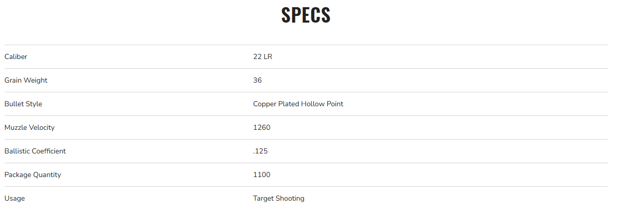 Federal Black Pack, 22 LR, 36 Gr, Copper Plated HP 1100 rounds