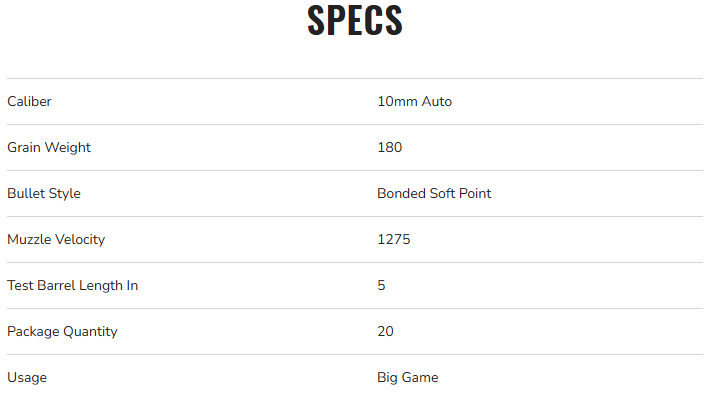 - Full-power 10mm load delivers on what the 10mm was designed to do