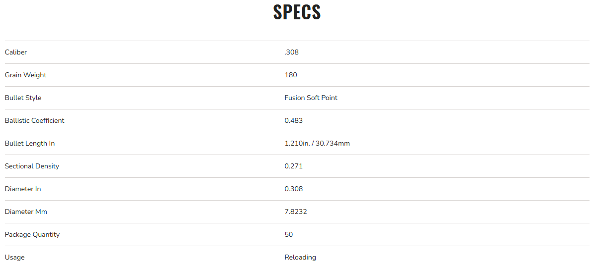 Handloaders can now roll their own with the bullet design from one of the most popular factory loads. Fusion component bullets provide the largest expansion and highest weight retention in their class. With a molecularly fused jacket and a pressure-formed core, Fusion transfers maximum energy on target and provides tag-filling accuracy.