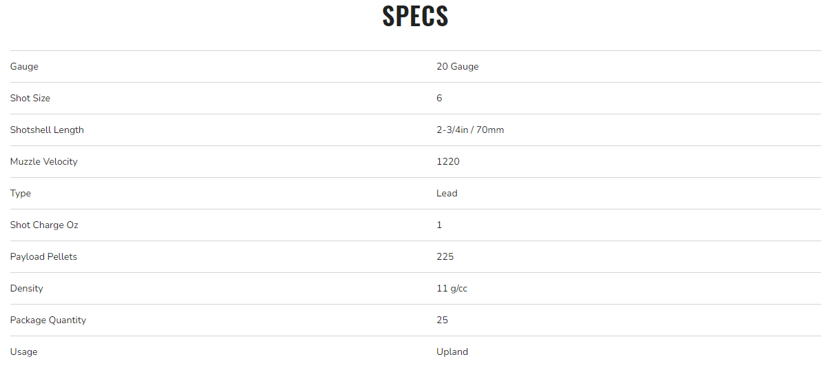 Federal Game Load Upland Hi-Brass 20 Ga, 6 Shot, 2-3/4", 1oz, 1220fps