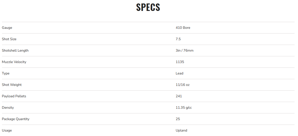 Federal Game Load Upland Hi-Brass 410 Bore 7.5 Shot 3 in 11/16 oz, 1135fps