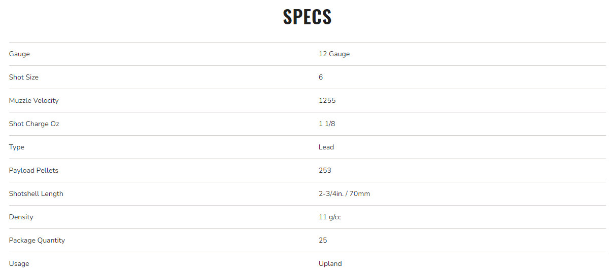 Federal Game Load Upland Heavy Field, 12ga, 6 Shot, 2-3/4 in, 1 1/8 oz, 1255 fps