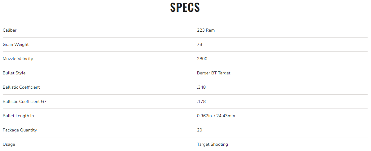 Federal Gold Medal 223 Rem 73gr Berger Hybrid BTHP