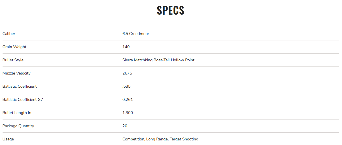 | Caliber | 6.5 Creedmoor |