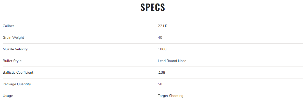 Federal Gold Medal Rimfire, 22 LR, 40gr, Lead Round Nose, 1080 fps