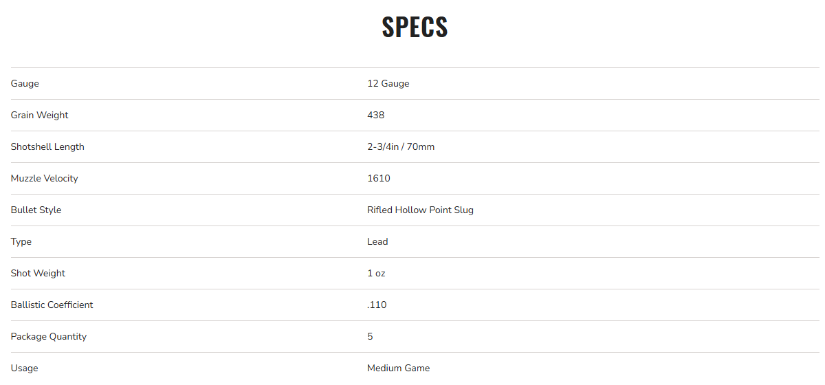 - Soft lead slug delivers good expansion