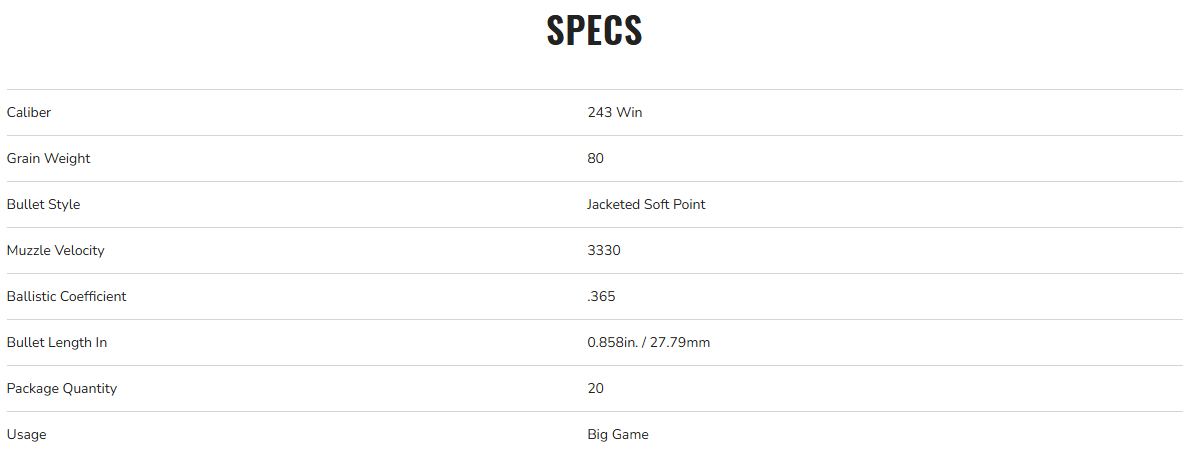 Federal Power-Shok, 243 Win, 80gr, Jacketed Soft Point, 3330 fps