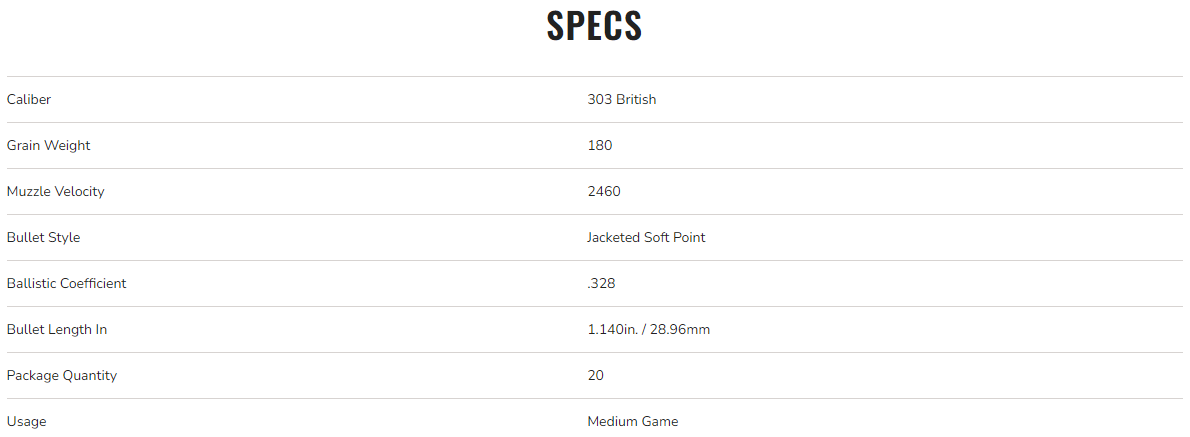 Federal Power-Shok, 303 British, 180gr, Jacketed Soft Point, 2460 fps