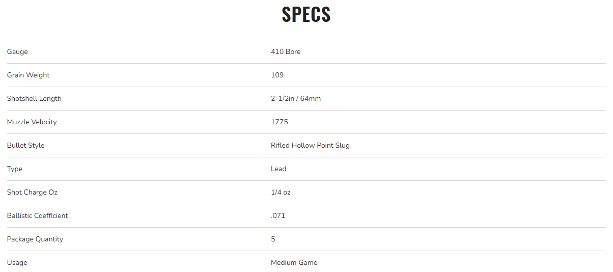 Federal Power-Shok Rifled Slug, 410 Bore, 1/4oz, 2-1/2 in, 1775 fps