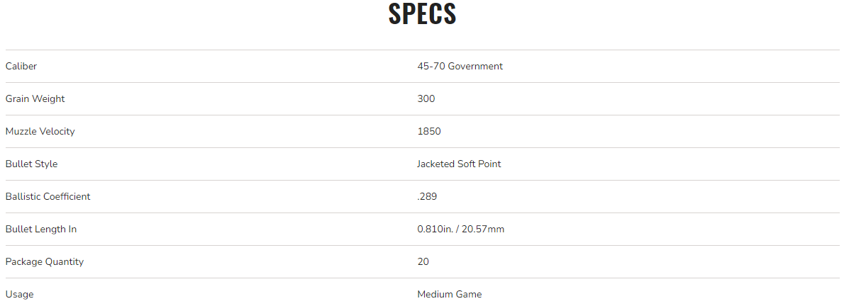 Federal Power-Shok, 45-70 Government, 300gr, Jacketed Soft Point, 1850 fps