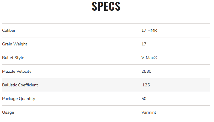 | Caliber | 17 HMR |