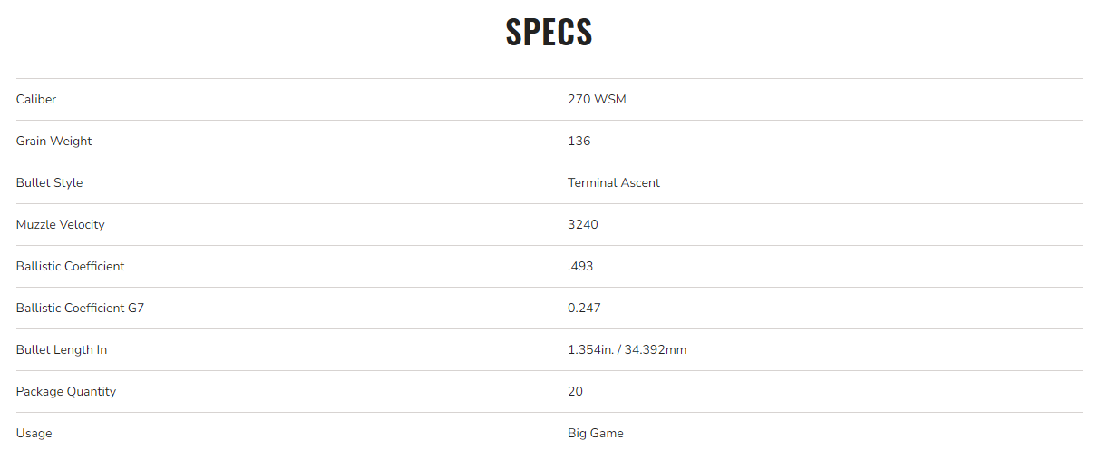 Federal Premium 270 WSM, 136gr, Terminal Ascent, 3240 fps