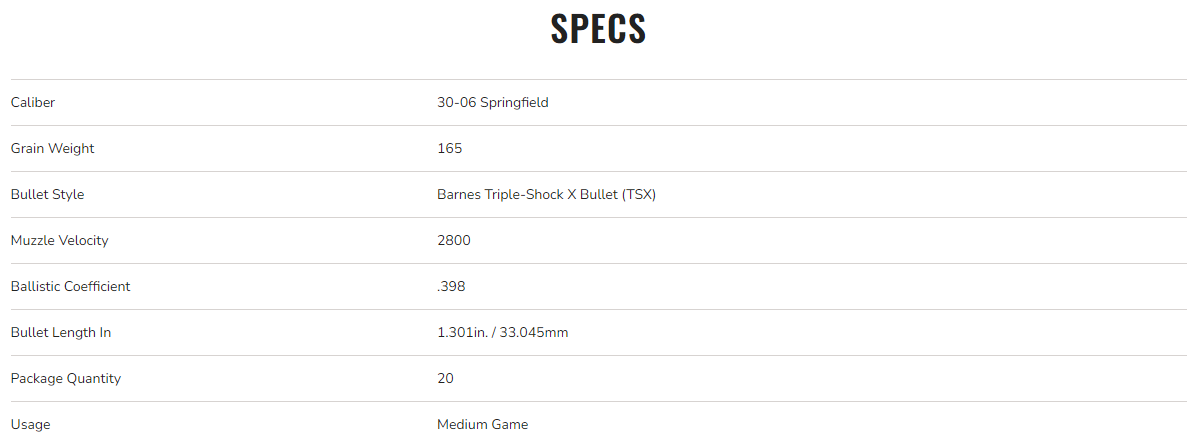Federal Premium 30-06 Springfield, 165gr, Barnes Triple-Shock, 2800 fps