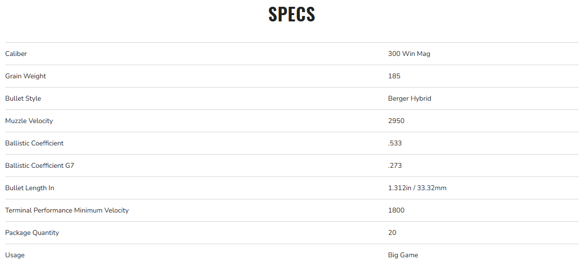- Lethal and reliable terminal performance on medium and big game