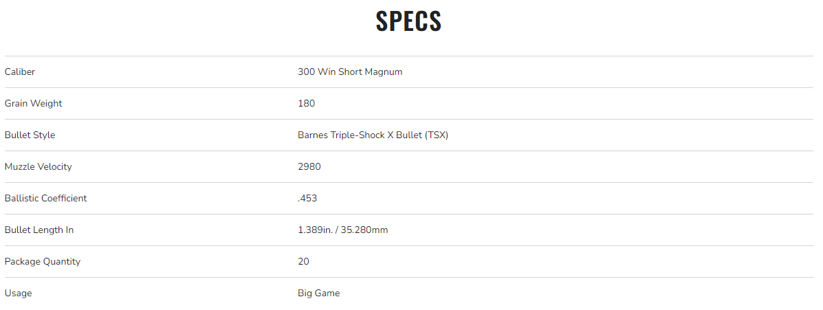 Federal Premium 300 WSM, 180gr, Barnes Triple-Shock, 2980 fps