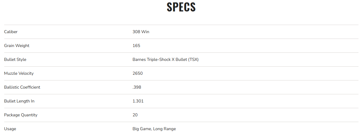 Federal Premium 308 Win, 165gr, Barnes Triple-Shock, 2650 fps**