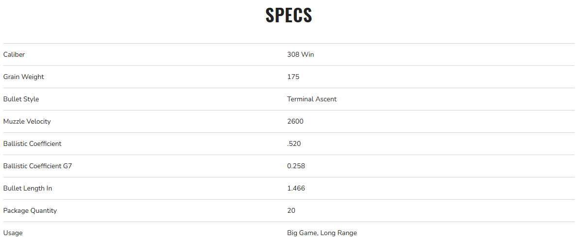 Federal Premium 308 Win, 175 Grain, Terminal Ascent, 2600 fps