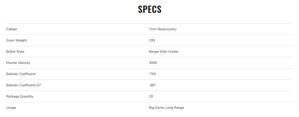 - 195-grain 7mm Backcountry offering
