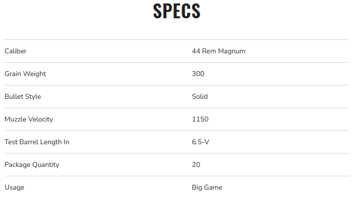 Federal Solid Core, 44 Rem Magnum, 300gr, Solid, 1150 fps
