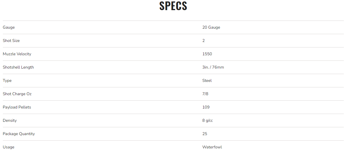 Federal Speed-Shok, 20 Gauge, 2 Shot, 3 in, 7/8 oz, 1550 fps