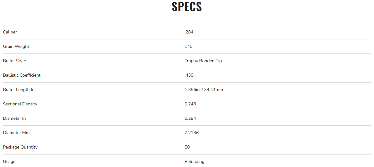 • Offered in bullet diameters and weights perfect for the most popular big game cartridges