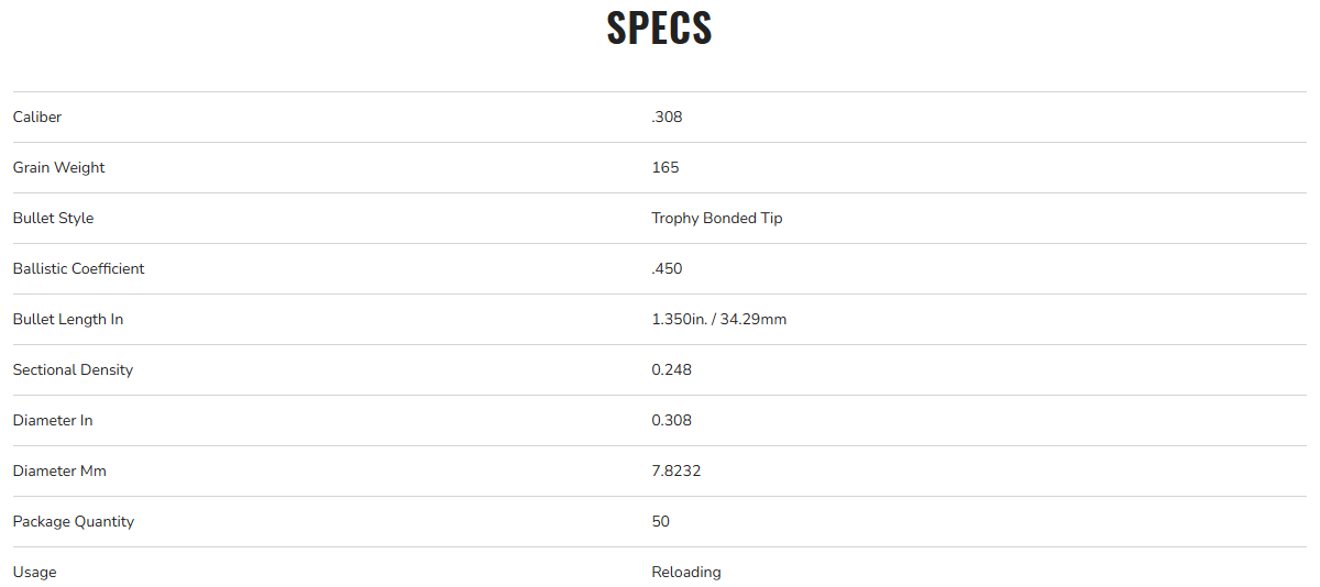 - Offered in bullet diameters and weights perfect for the most popular big game cartridges