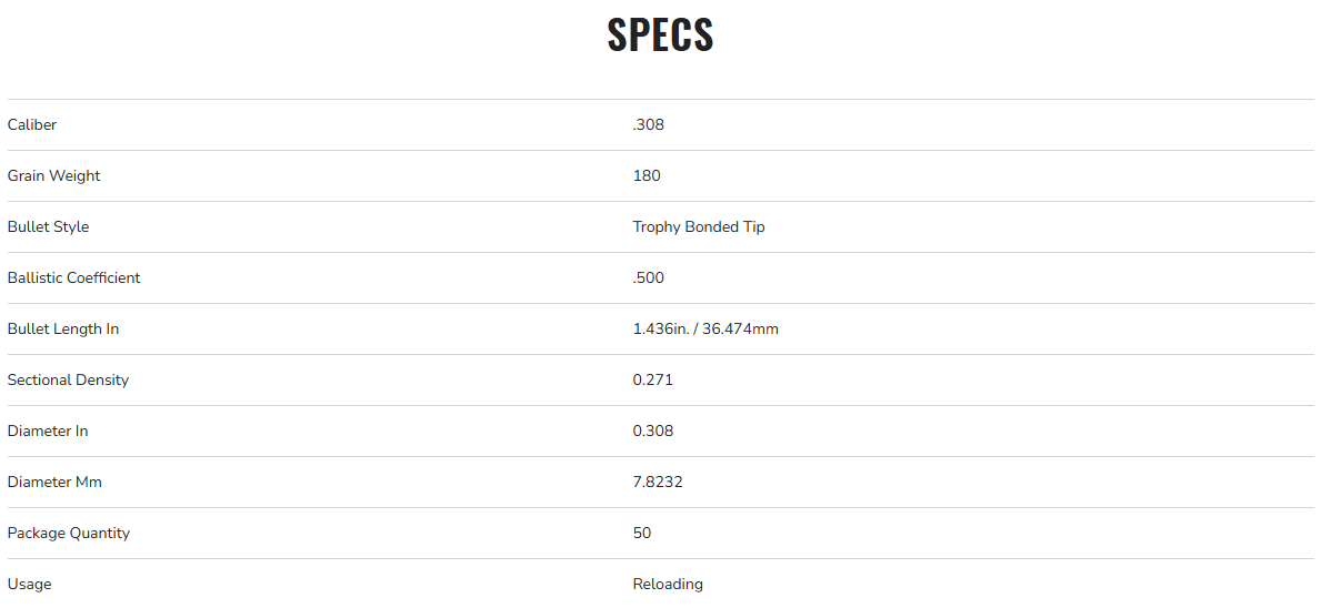 - Offered in bullet diameters and weights perfect for the most popular big game cartridges