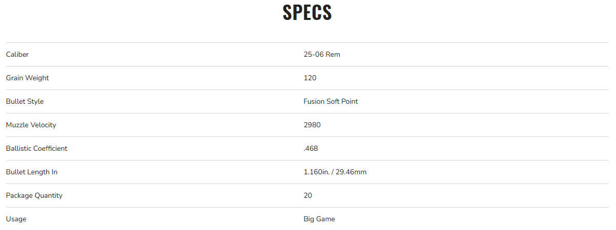 Fusion 25-06 Rem, 120gr, Soft Point, 2980 fps