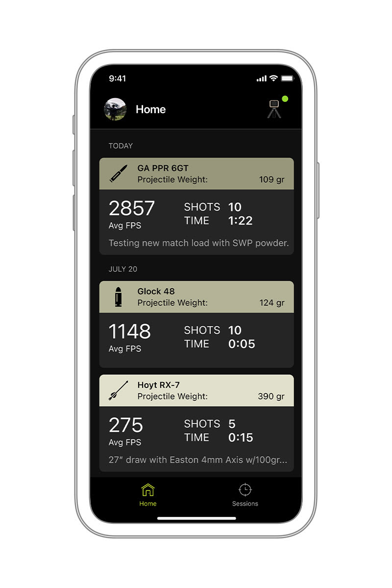 Shoot different firearms while the barrel cools off, or test multiple bows or arrows with the resume sessions feature — which keeps data separate for each.