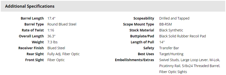 The Big Boy X-Model is packed with a high-performance feature set and plenty of room to add even more. The durable synthetic furniture is equipped with integrated mounting points for a sling, a solid rubber recoil pad, and both Picatinny and M-Lok accessory slots to aid in mounting the tools you need for the task at hand. The carbine-length barrel is topped off with highly visible fiber optic sights, fore and aft, and the muzzle end is threaded (5/8×24 thread pitch) to accept a suppressor or other muzzle device. A screw-on thread protector ensures your muzzle threads stay in top shape.