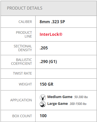 The raised InterLock® ring is embedded in the bullet's core, ensuring the core and jacket are locked in one piece during expansion to retain mass and energy.