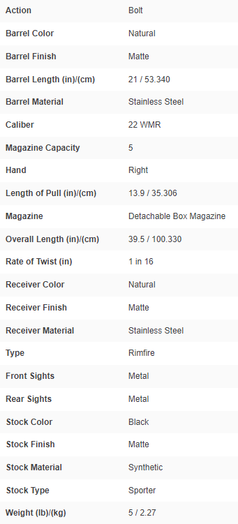 Combine the extra punch of the 22 WMR cartridge with the precision of the user-adjustable AccuTrigger™ in the 93 FSS. Its 21-inch, stainless steel sporter barrel is button rifled for exceptional accuracy and perfectly balanced to the the synthetic black stock.