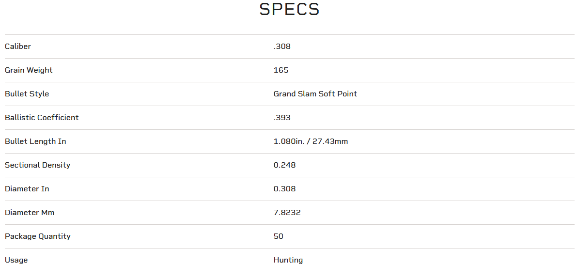 With a tapered, precision-drawn jacket and a long nose, the Grand Slam® bullet is engineered to blow through the thick hides, heavy bones and tough bodies of the biggest game animals—without sacrificing accuracy. On impact, internal jacket flutes allow consistent expansion, yet the bullet retains most of its weight for deep penetration every time.