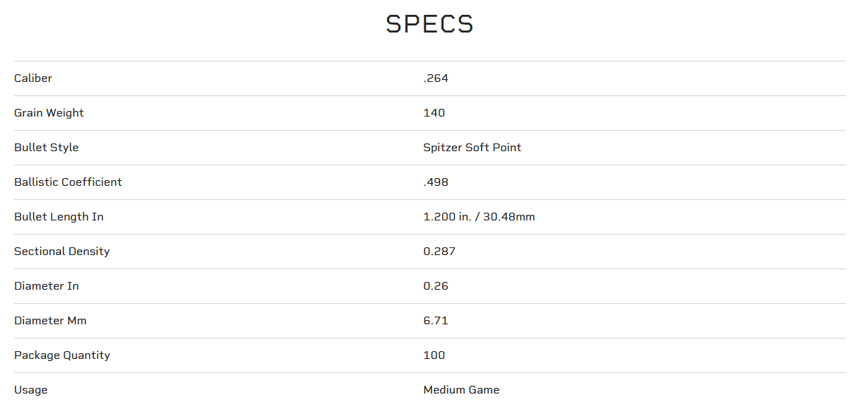 - Consistent terminal performance on medium and big game