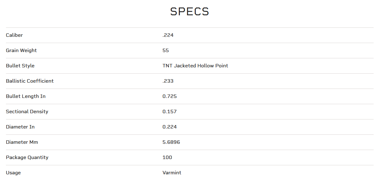 Speer® TNT gives predator and varmint hunters what they want most—pinpoint long-range accuracy and maximum destruction on impact. Its thin precision jacket features internal fluting to ensure complete bullet disruption, while its high ballistic coefficient produces the flattest trajectories possible. Excellent choice for coyote hunters trying to minimize pelt damage.