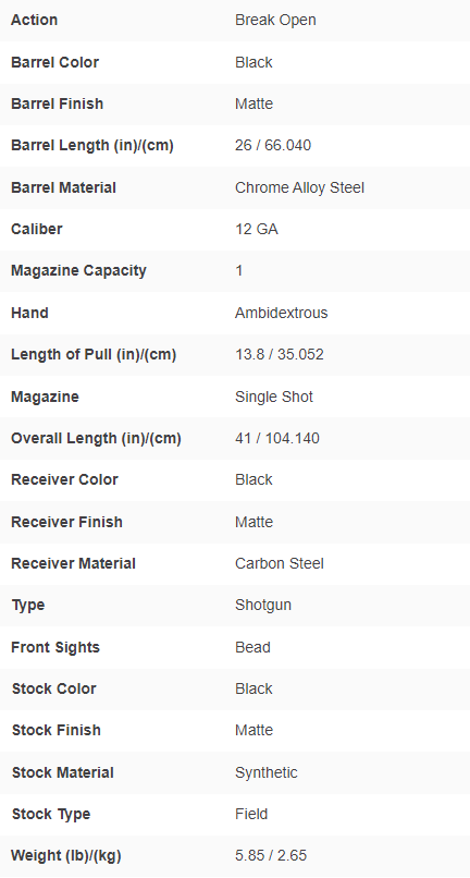 - Single-shot, break-action shotgun