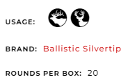 Ballistic Silvertip ammunition provides hunters proven immediate knock-down and extreme precision. Innovation combined with engineering excellence makes Ballistic Silvertip the choice for those who appreciate the legendary excellence Winchester is known for around the world.