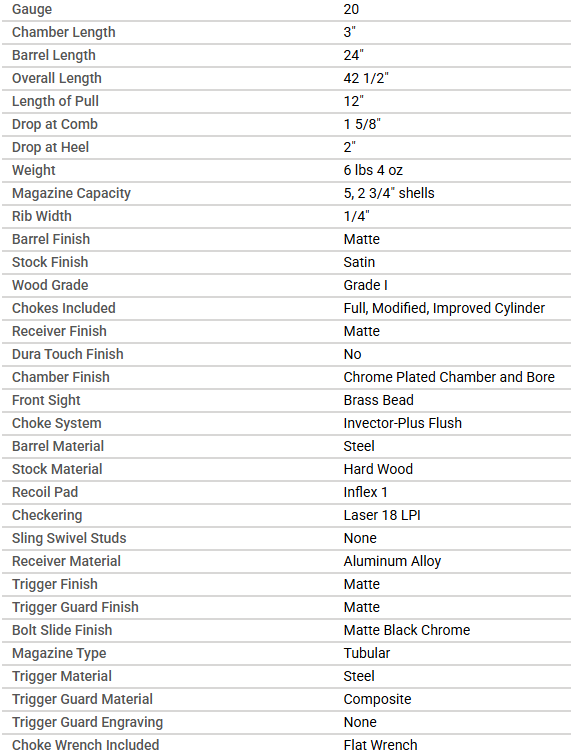 - 20 gauge, 3" chamber