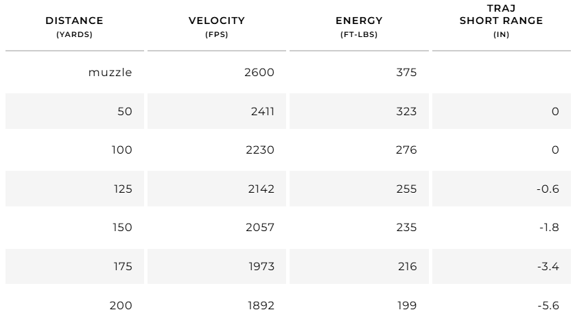 2-1/2 times the down range energy of 17 HMR